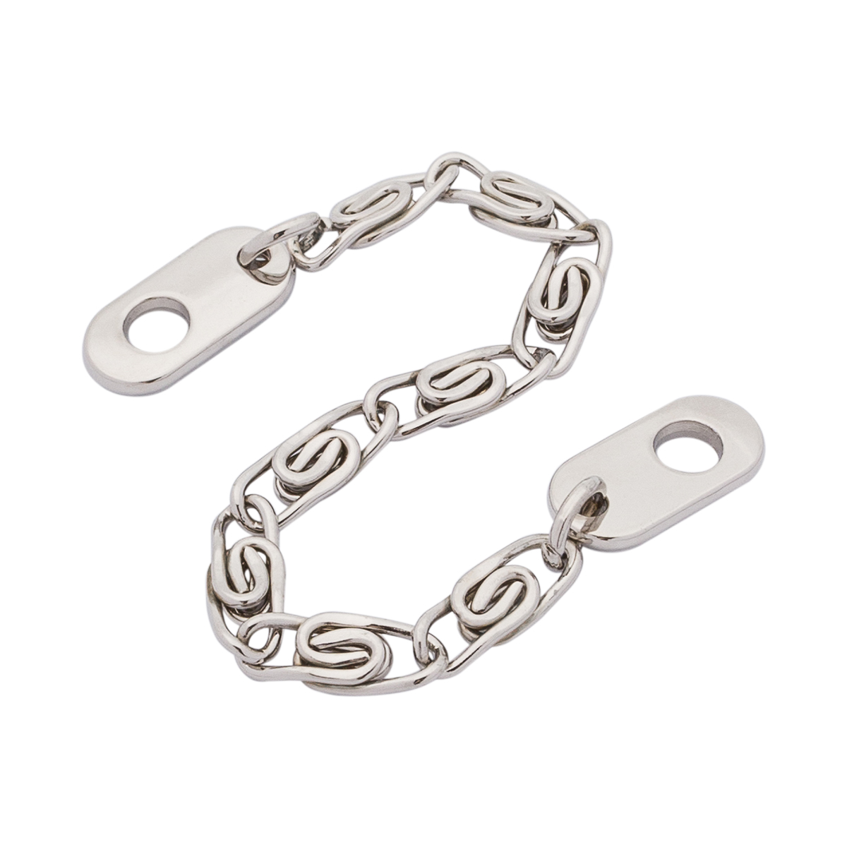 Вешалка-цепочка изготовлена из металлического сплава, выдерживает стандартные нагрузки, сохраняет цвет и не подвержена коррозии. Имеет стильную конструкцию, выглядит современно и может служить элементом дизайна.