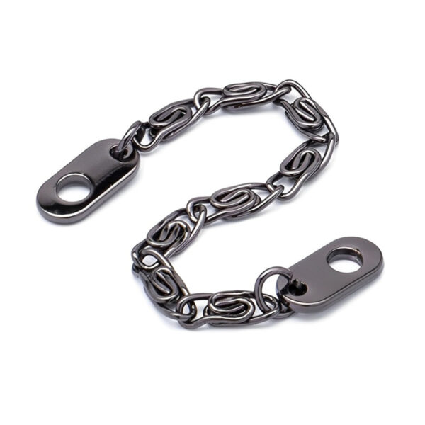 Вешалка-цепочка изготовлена из металлического сплава, выдерживает стандартные нагрузки, сохраняет цвет и не подвержена коррозии. Имеет стильную конструкцию, выглядит современно и может служить элементом дизайна.