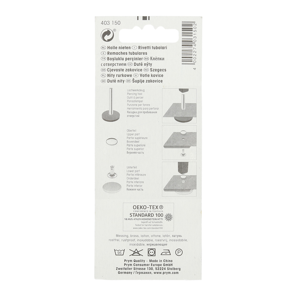 Клепки с отверстием от Prym пригодятся тем, кто занимается шитьем и ремонтом сумок, кожаной галантереи, верхней одежды.