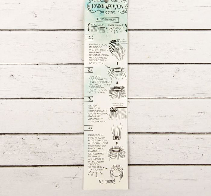 С помощью тресс можно сделать прическу желаемой формы и объема. Крепятся к голове куклы послойно, начиная с затылочной части.
