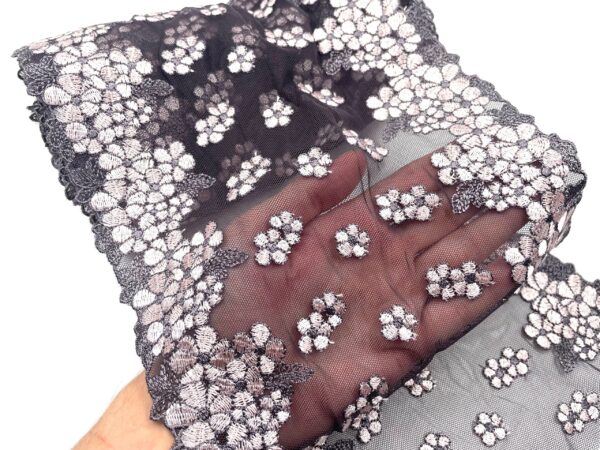 Очень красивое и нежное кружево на мягкой сетке. Воздушное, тонкое, приятное на ощупь. Кружево на сетке подходит, как для шитья, отделки, так и для скрапбукинга, изготовления кукол, свадебных украшений и одежды в стиле эко, бохо и шебби-шик.