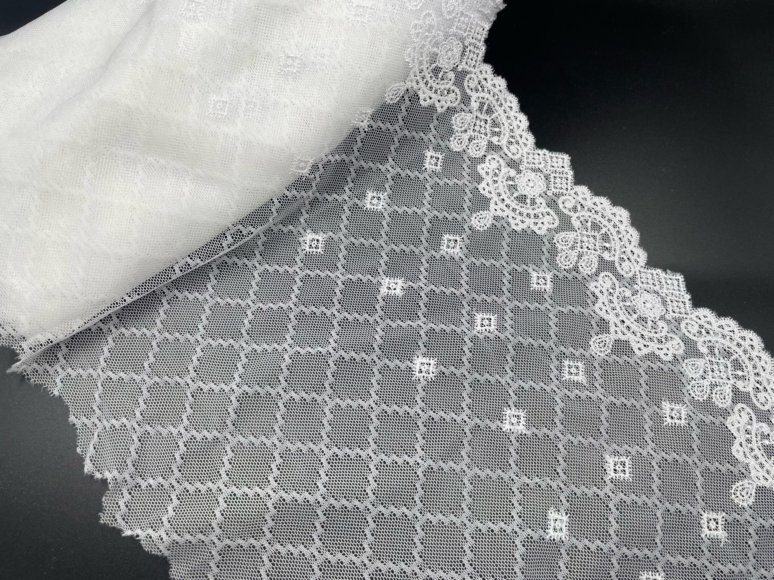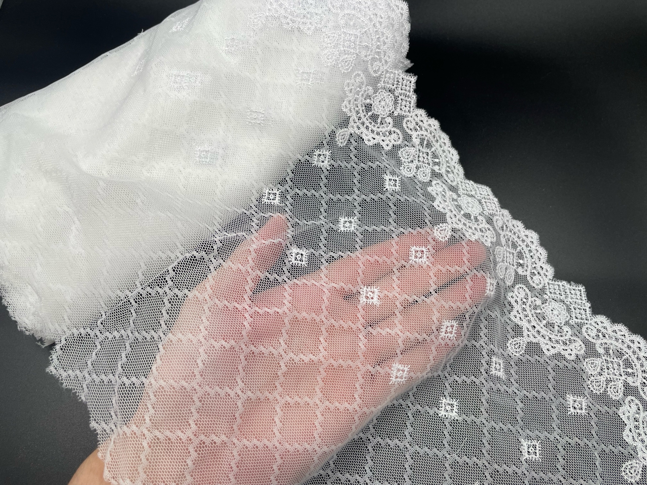 Очень красивое и нежное кружево на мягкой сетке. Воздушное, тонкое, приятное на ощупь. Кружево на сетке подходит, как для шитья, отделки, так и для скрапбукинга, изготовления кукол, свадебных украшений и одежды в стиле эко, бохо и шебби-шик.