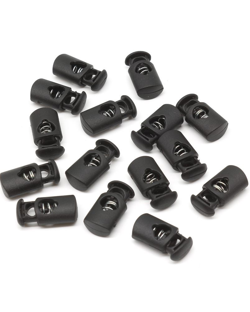 Для одного шнура. Применяются для фиксации шнуров в застежках, декоративных элементах и пр.
